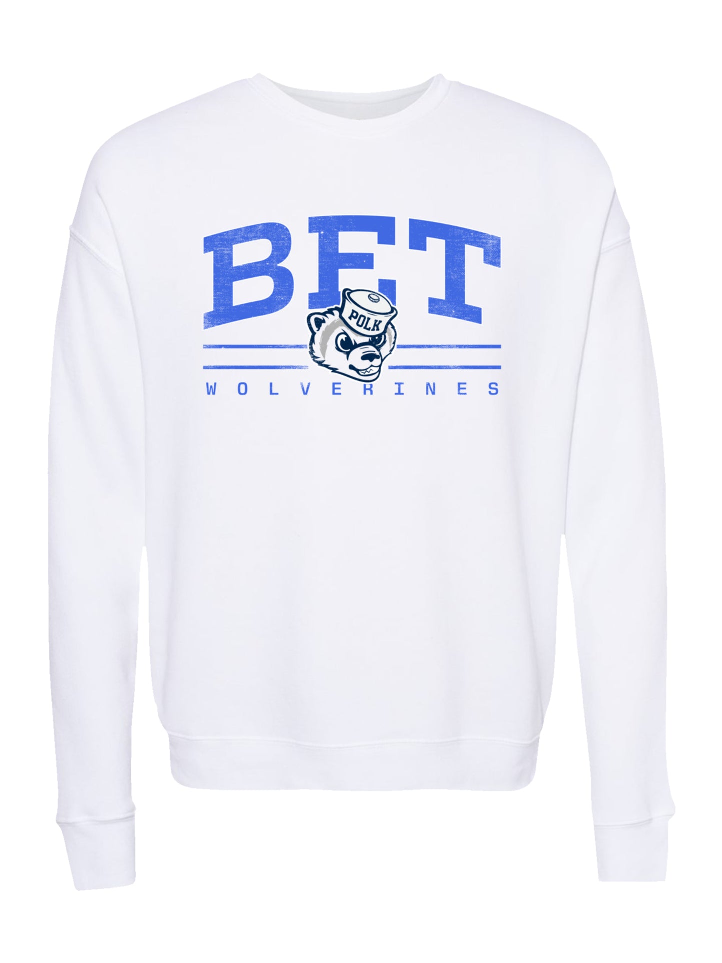 Show off your Wolverines pride with this Polk County Schools branded Crewneck Fleece Sweatshirt! This classic unisex pullover crewneck sweatshirt is made from comfy, super-soft fleece designed for warmth and breathability. Featuring an on-trend drop-shoulder seam and a unisex retail fit. Finished with ribbed cuffs and waistband.