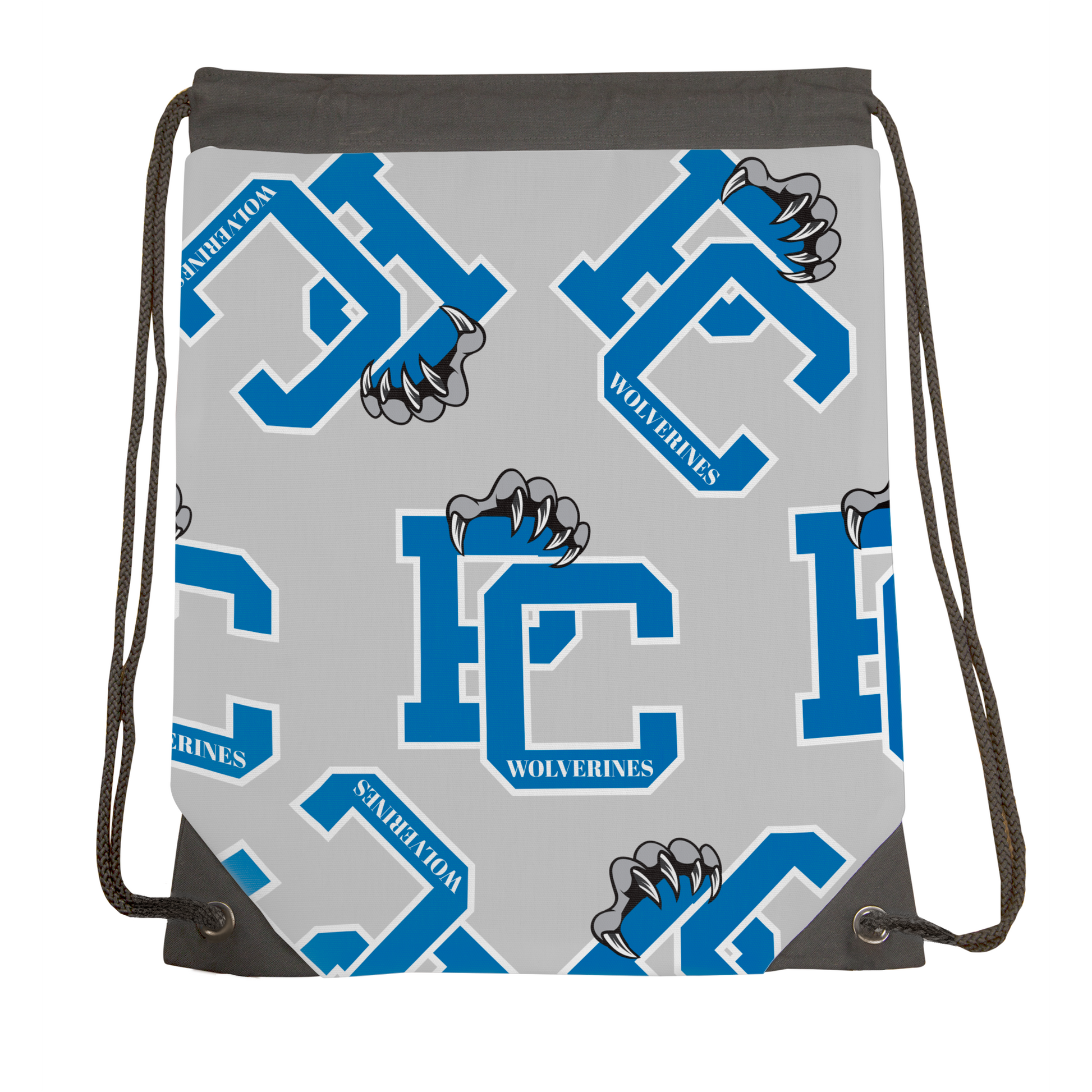 Show off your Wolverines pride with this official Polk County Schools branded Drawstring Gymbag! This versatile, lightweight gym bag is perfect for a trip to the gym or for carrying everyday items. Featuring vibrant all-over print design, a black sheet liner, small zipper pocket on inside liner, and a drawcord fed through metal grommets.